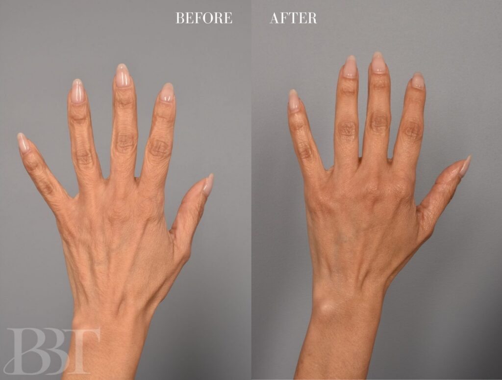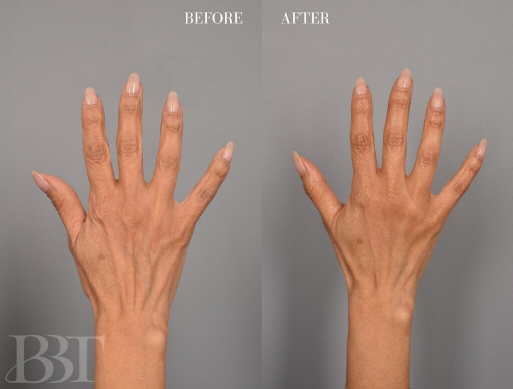 This fit and very healthy patient wanted to add volume to her hands. She wanted to reduce the visibility of her veins and tendons in the back of her hands while also improving the texture and quality of the skin.